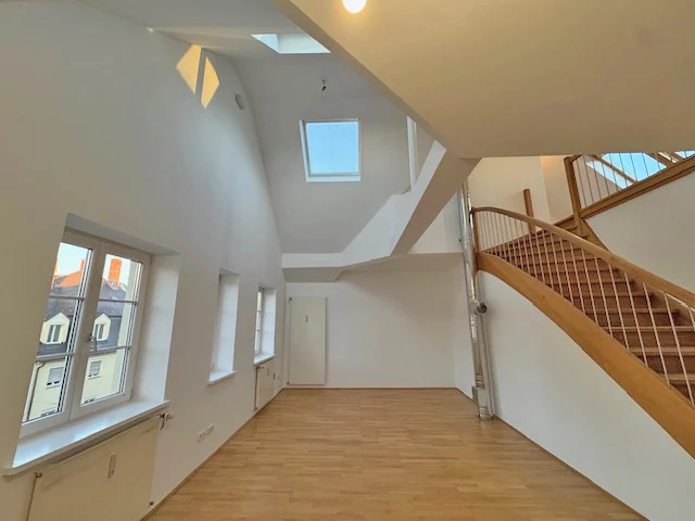 Herrliche 3,5 Zimmer-Dachgeschosswohnung zuzüglich Galeriezimmer in ruhiger Lage in einem Altbau in bester Lage in Neuhausen. Die Dachwohnung mit großen Dachflächenfenstern und Gauben bietet in der 4. Etage einen geräumigen Wohnbereich, eine Wohnküche, ein Gäste-WC, eine Abstellkammer und eine Diele.