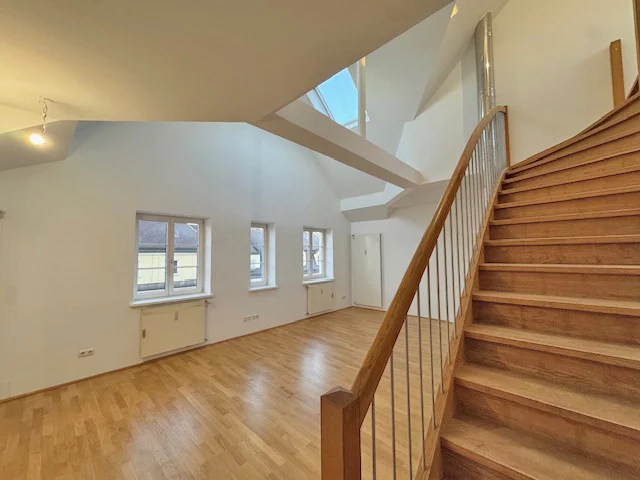 4. OG.: 1 großer Wohnbereich, 1 Wohnküche, 1 Gäste-WC, 1 Diele, 1 Abstellkammer, 1 Treppe zur Galerie.