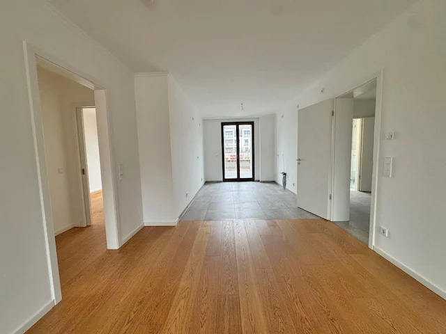 Die Wohnung bietet ein ca. 30,2 qm großes Wohnzimmer mit offenem Küchenbereich, zusätzlich zwei Schlafzimmer (ca. 14,4 qm, 12,2 qm), zwei schön gestaltete Bäder, eines mit Badewanne, eines mit Dusche. Beide Bäder bieten bodentiefe Fenster, das Duschbad ist mit einem Waschmaschinenanschluß ausgestattet.
